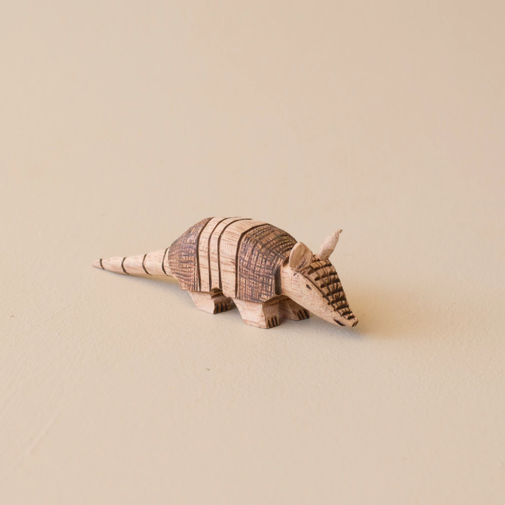 Bicho Miniatura Indígena Tatu em Madeira - Etnia Terena