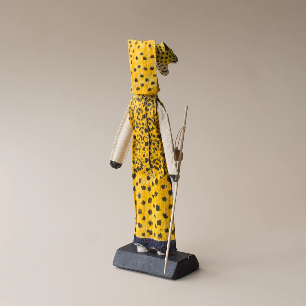 animais da floresta. Este boneco representa um clã, onde os homens usam uma vestimenta usada no ritual, da MOÇA NOVA, que consiste na primeira menstruação da mulher, onde ela é benzida e recebe proteção espiritual para a vida adulta. A confecção é domínio somente dos homens, a matéria prima usada é entre casca de árvore denominada tururi e corantes naturais.