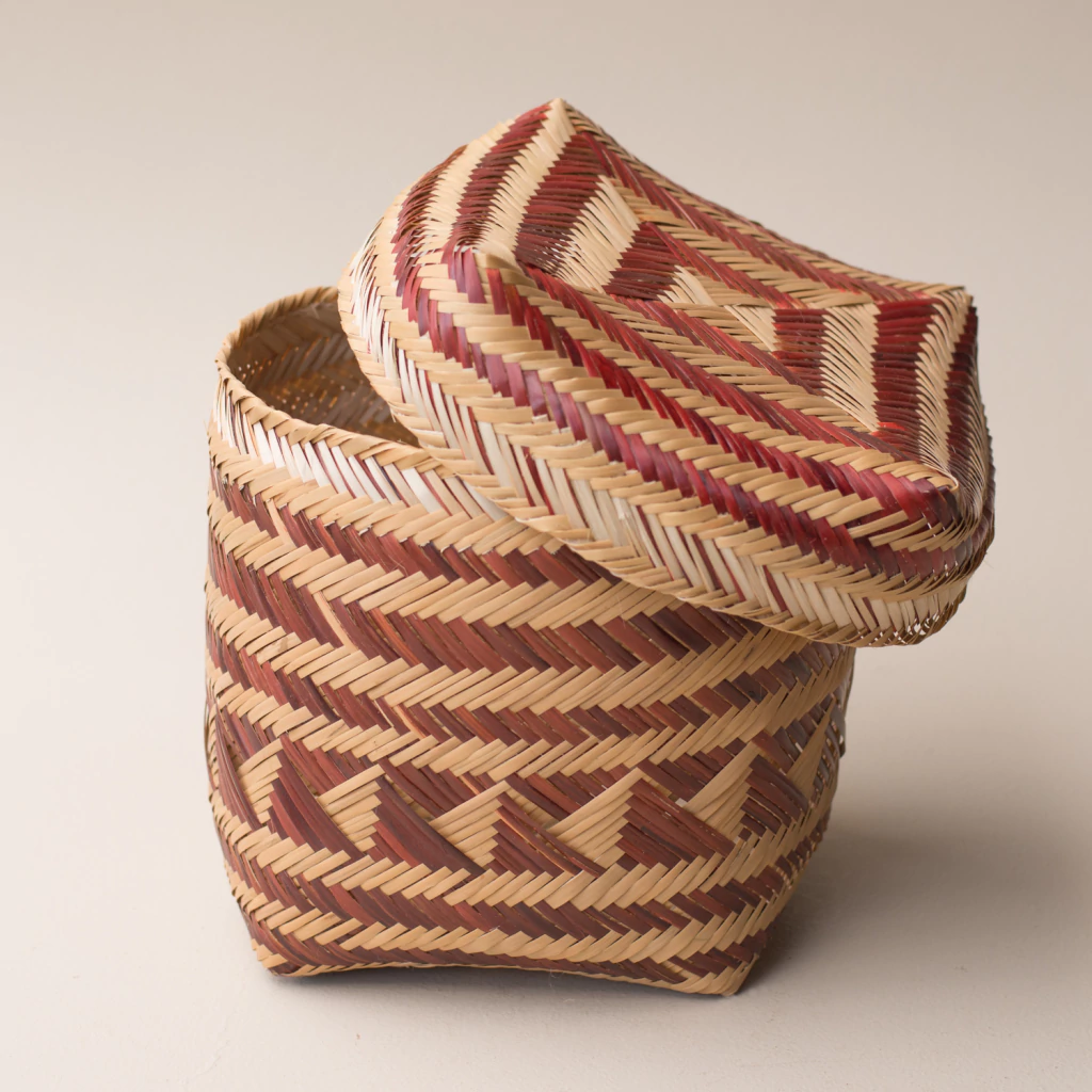 Os Tikuna, que se autodenominam Magüta, são o povo indígena mais numeroso da Amazônia brasileira, habitando principalmente a região do rio Solimões, no Amazonas. A cestaria é um ofício ancestral entre esse povo e faz parte do aprendizado das mulheres desde a infância, carregando também uma dimensão ritualística. Tecidos à mão com fibras naturais, os cestos revelam não apenas utilidade, mas também a identidade cultural e a força da tradição indígena.