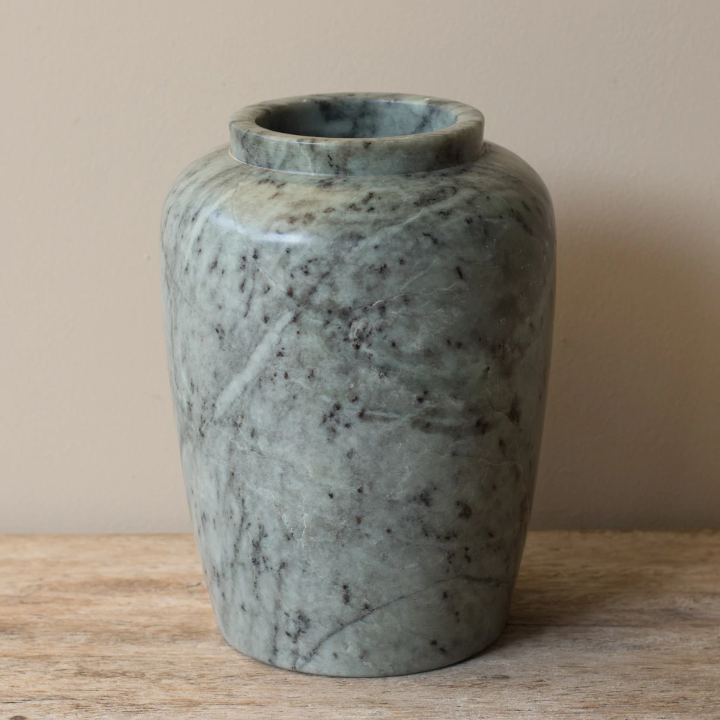 Originário de Minas Gerais, o vaso em pedra-sabão une tradição artesanal e design atemporal. Cada peça é única, resultado da combinação das tonalidades naturais da pedra com o trabalho manual que valoriza suas formas e texturas.