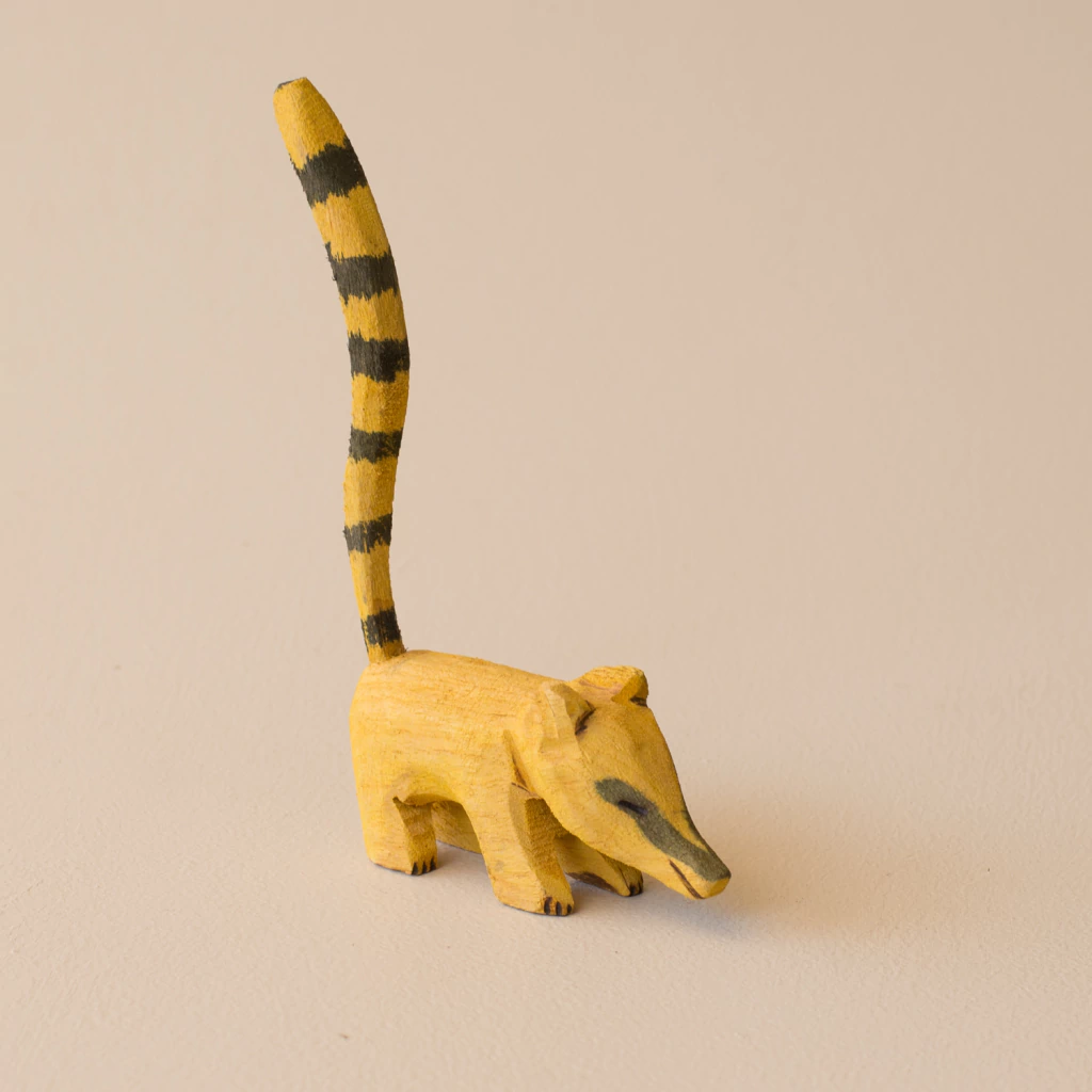 Bicho Miniatura Indígena Quati em Madeira - Etnia Terena