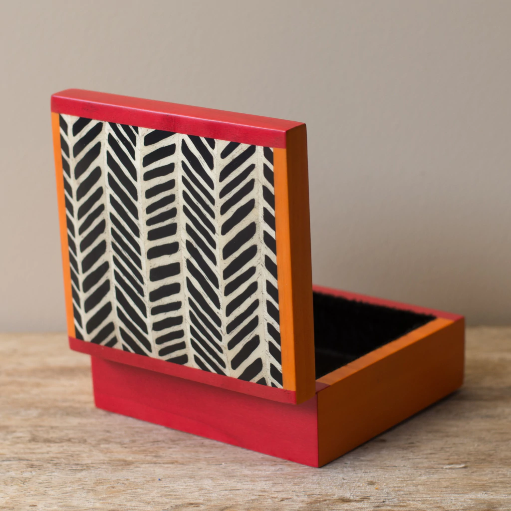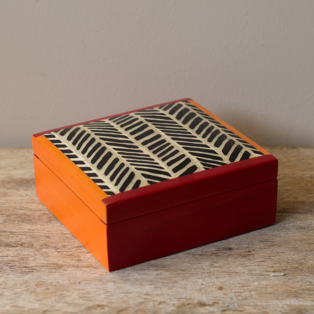 Essa caixa em marchetaria, produzida no Acre, reúne funcionalidade e beleza: além de servir como objeto utilitário, é também uma peça decorativa única, capaz de valorizar qualquer ambiente com sua originalidade e história.