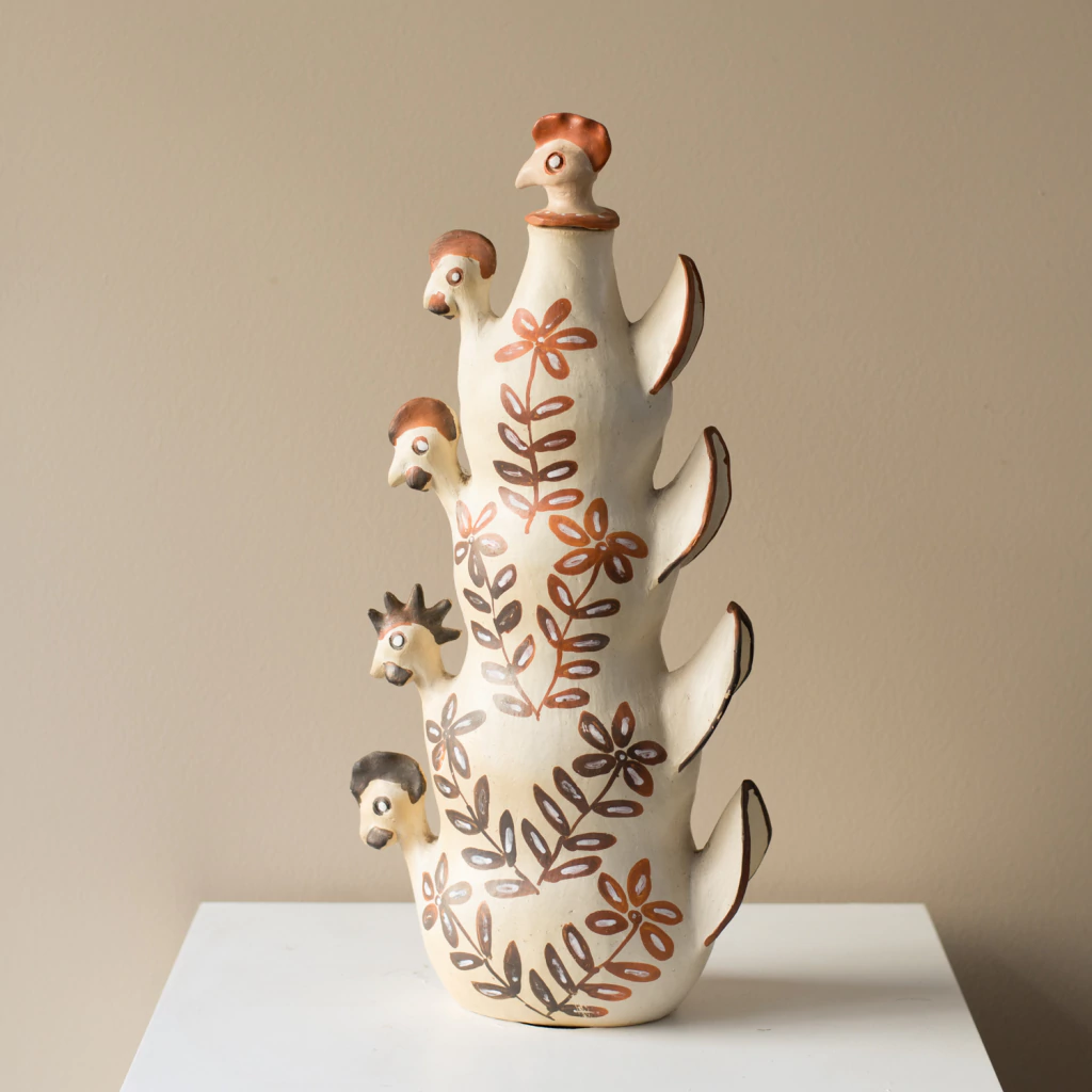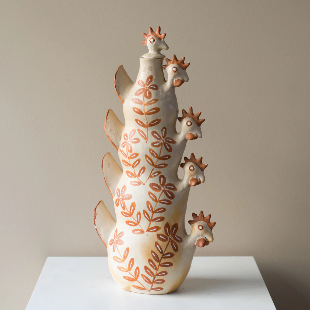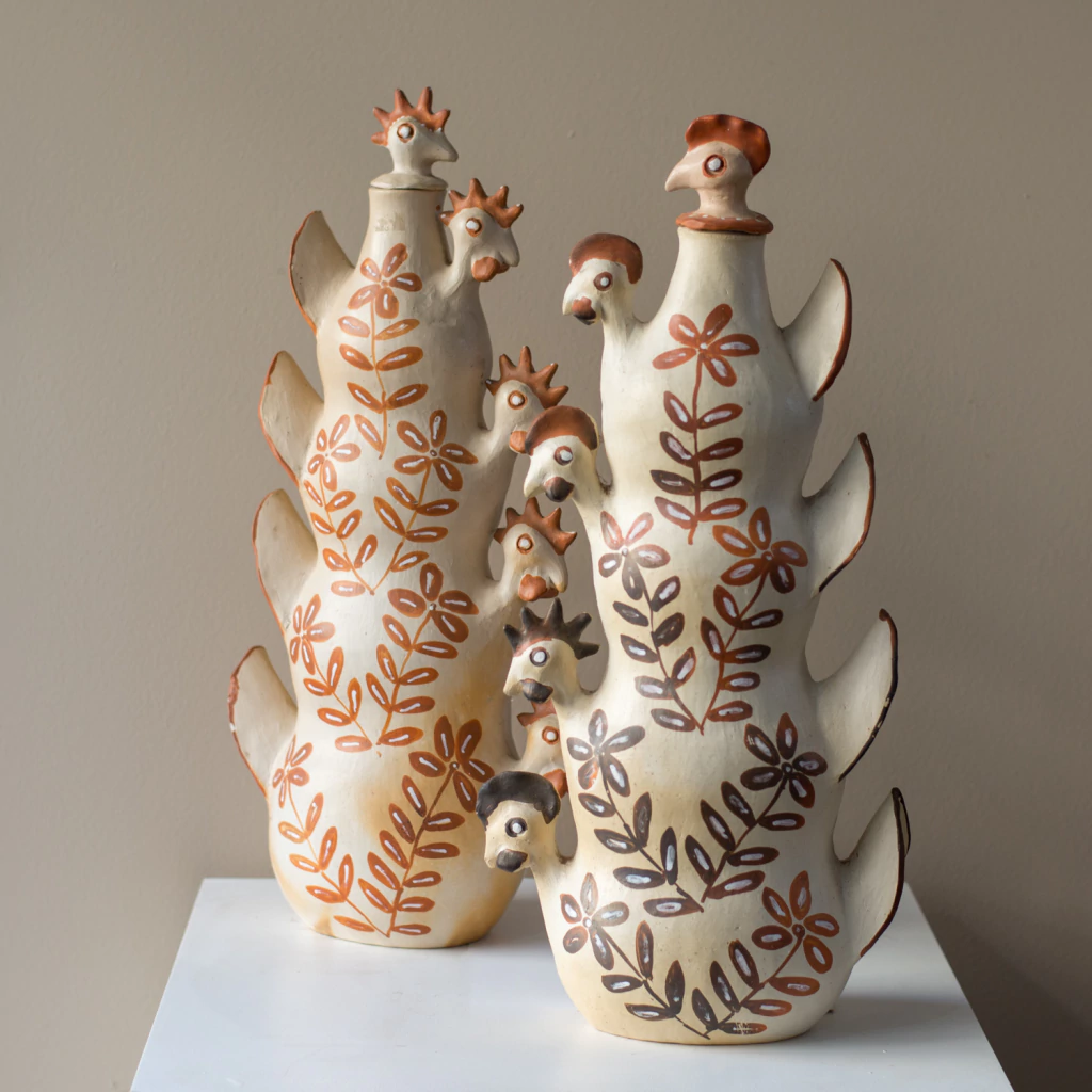 A produção é inteiramente artesanal: da coleta do barro ao preparo, da modelagem à queima, até os traços finais da pintura feita com pigmentos naturais da própria região. Cada peça é singular e carrega em si a memória e o talento de gerações.