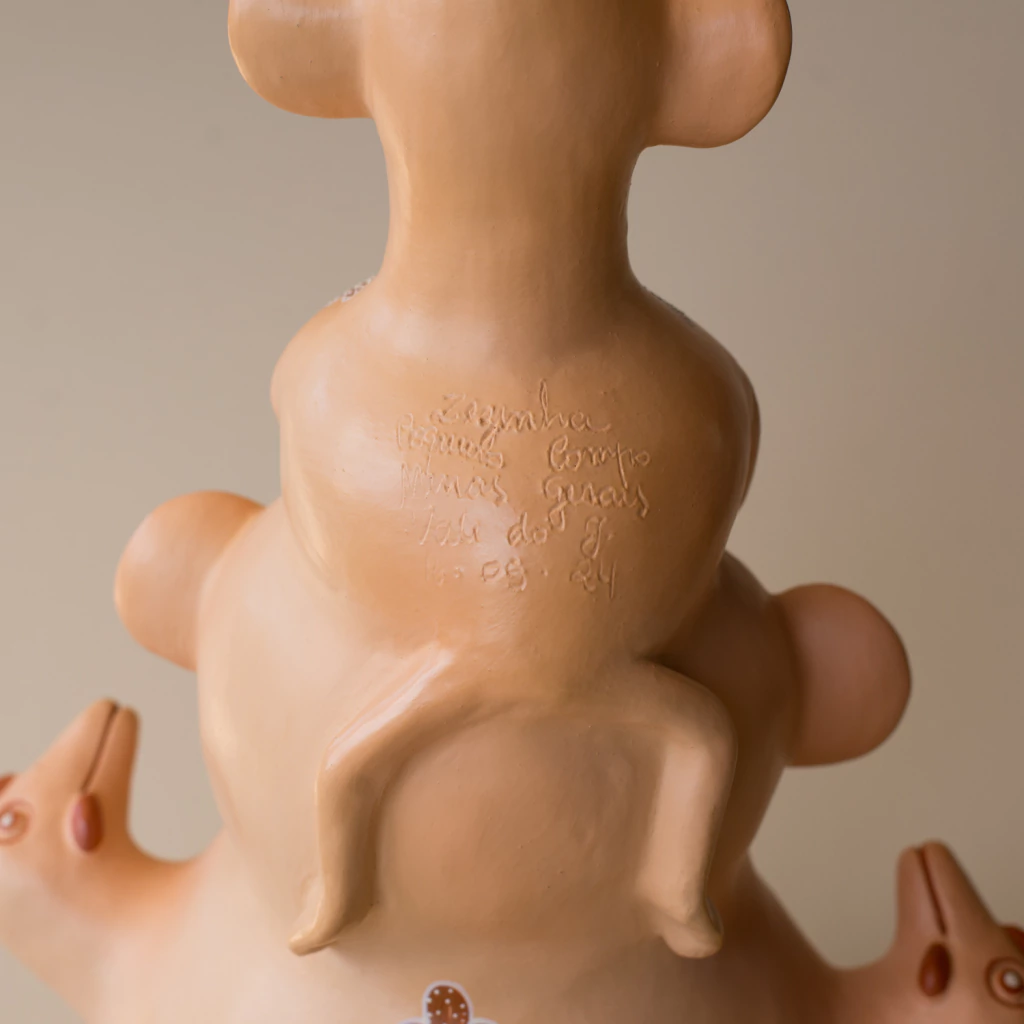 Maria José Gomes da Silva, conhecida como Zezinha, nasceu em 1968 em Campo Alegre, às margens da Boca do Jequitinhonha. Filha de artesãos, cresceu vendo os pais moldarem a argila e cedo iniciou seu próprio caminho na cerâmica. Hoje, é reconhecida em todo o Brasil por seu trabalho primoroso: bonecas de feições delicadas, esculturas expressivas e acabamento sempre caprichado, que revelam a força e a identidade da região.