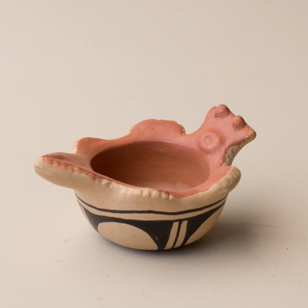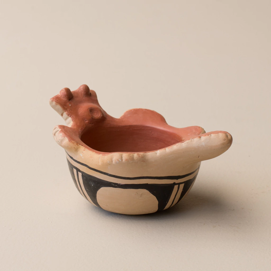 Produzida artesanalmente pela etnia Waujá (ou Waurá), no Parque Indígena do Xingu, esta cerâmica é marcada por formas orgânicas e grafismos tradicionais que representam animais e seres zoomorfos. Cada peça é única e traduz a riqueza simbólica e estética de um dos povos mais importantes da região.